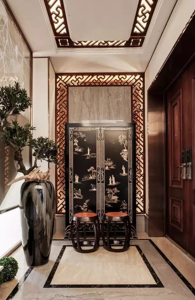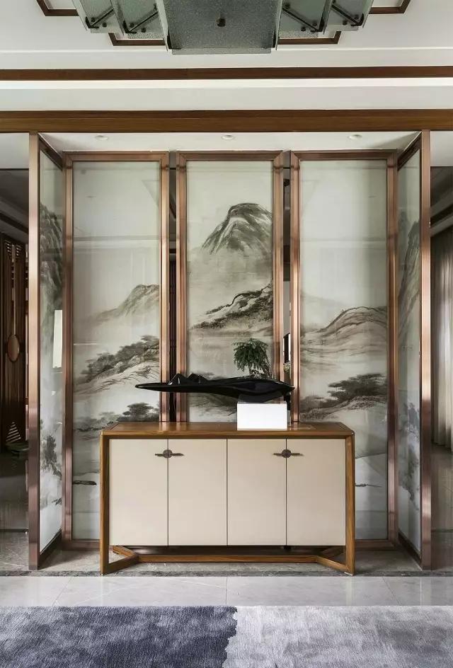 與傳統(tǒng)中式玄關(guān)不同的是,現(xiàn)代背景演繹下的新中式不再鐘情于繁瑣與沉悶,而是將傳統(tǒng)元素和現(xiàn)代元素相互融合,相得益彰,實(shí)木材質(zhì)和現(xiàn)代設(shè)計(jì)的碰撞,勾畫出打破傳統(tǒng)卻又不顯突兀的美感!