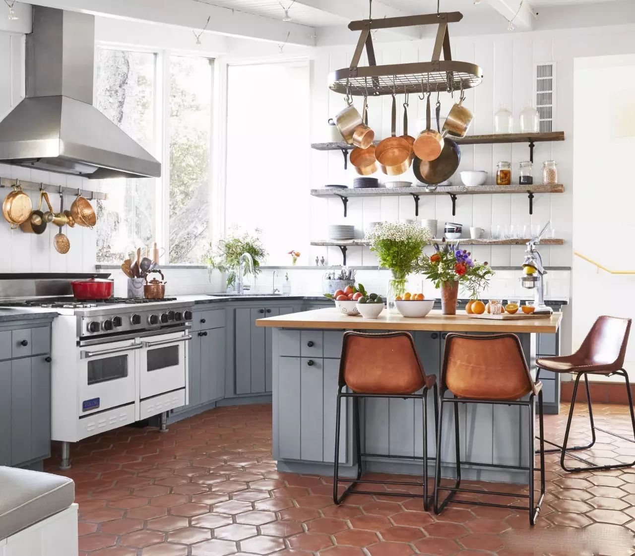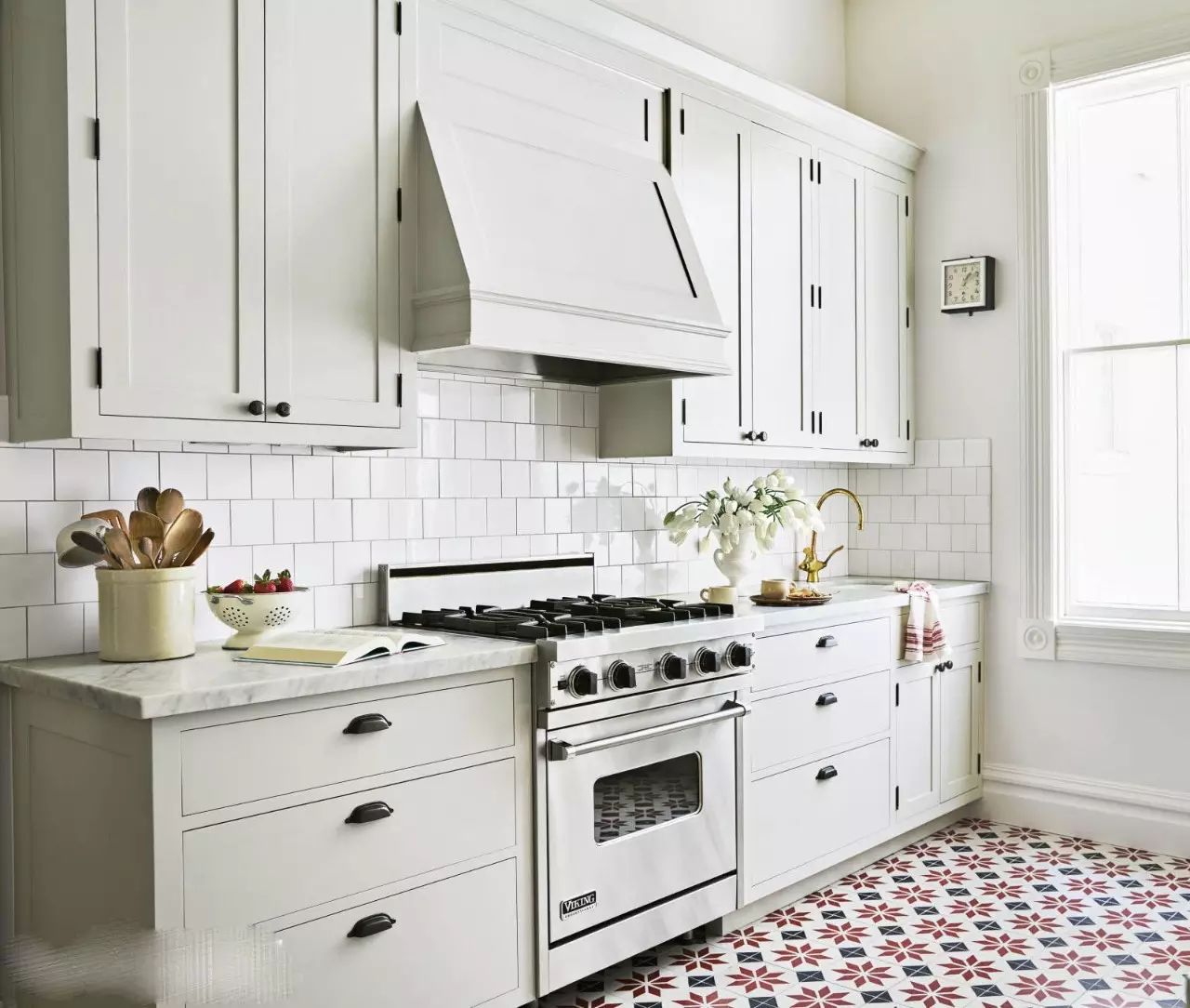 ?白色的廚房搭配紅藍(lán)的地磚,一下子鮮活起來(lái),所以說(shuō)顏色搭配是非常重要噠~