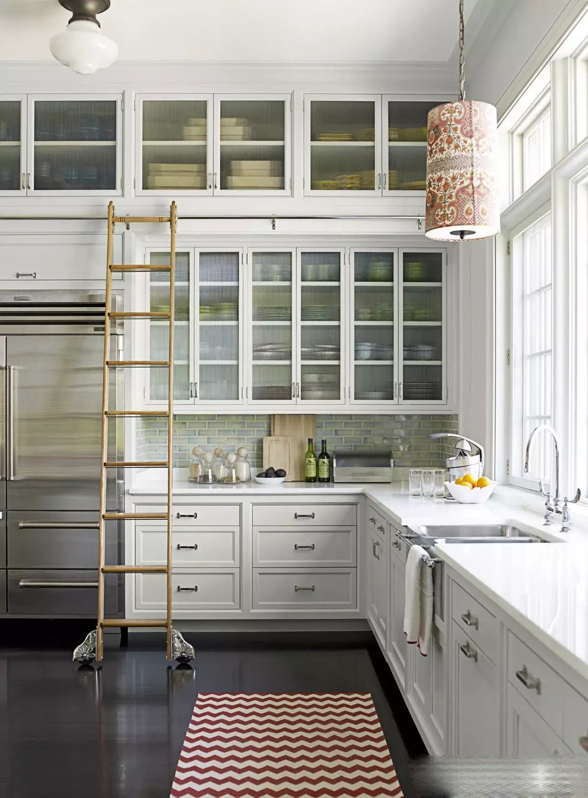 ?超高的置物柜!不過(guò)搭配梯子就沒(méi)有問(wèn)題啦~這樣能收納很多碗碟杯筷呢。
