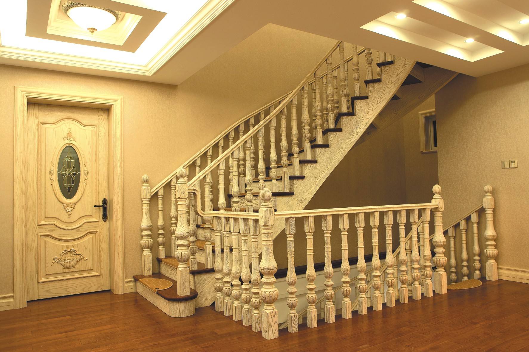 實木樓梯是用實木材質(zhì)制作的樓梯,實木樓梯具有天然獨特的紋理、柔和的色澤、腳感舒適、冬暖夏涼,并且是純天然綠色裝飾材料。