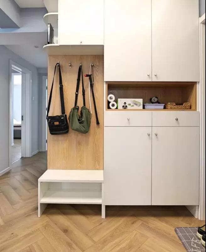 5、鞋柜底部要留空,高度留個(gè)15-20厘米,從外面回來,直接就能方便的把鞋子放進(jìn)去,不用堆在門口那么難看。
