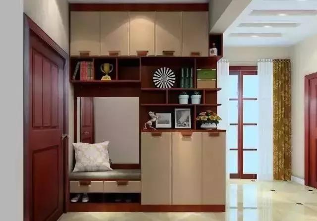 1、入戶鞋柜依墻而建,面積大點(diǎn)做的鞋柜它的功能也更多,可以同時(shí)具備鞋柜功能、衣帽間功能、儲(chǔ)物柜功能,利用率高,使用方便,一個(gè)柜子能頂三個(gè),很有優(yōu)勢。