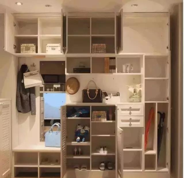 3、鞋柜一般都是裝在進(jìn)門處,需要使用方便,又不影響美觀,內(nèi)嵌式鞋柜與墻面保持一致,充分利用空間。